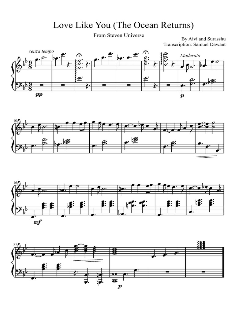 Love Like You from Steven Universe Arranged for Vocals, Violin, Piano Music by Aivi & Surasshu Arranged by Damian Nguyen Lyrics by Rebecca Sugar 5 10 ... Document Viewer